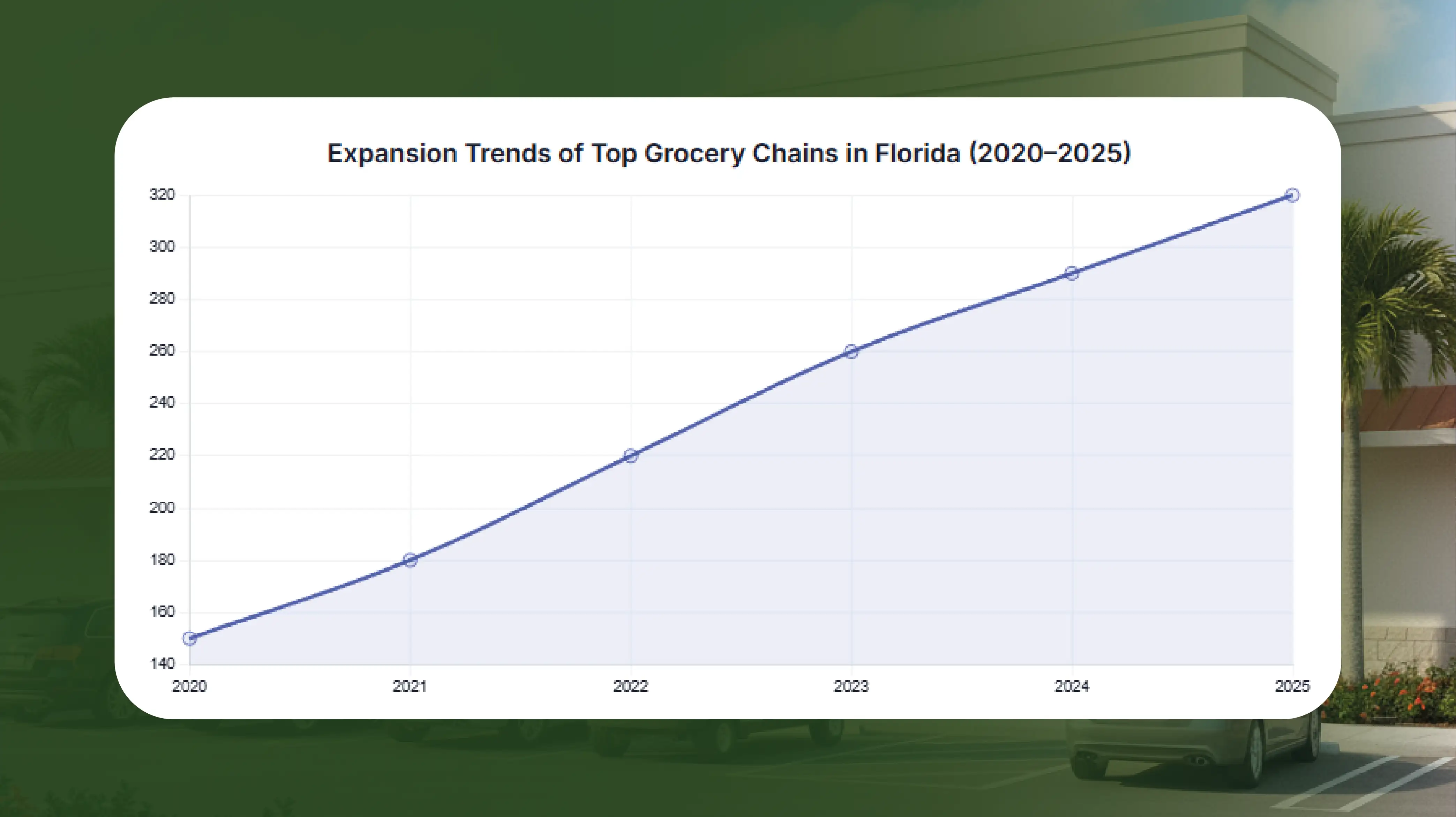 Between 2020 and 2025, the number of stores among the top 10 chains grew from an average of 150 to 320 per chain, reflecting a 113% increase in store reach. Notably, urban areas such as Miami, Orlando, and Tampa saw the highest concentration of new outlets.